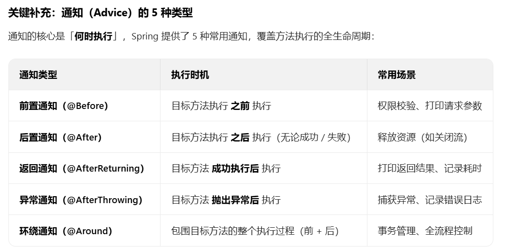 Spring AOP是 Spring 框架的一个核心模块,基于面向切面编程(AOP)思想,用于将横切关注点(如日志、事务、异常处理)从业务逻辑中分离出来,实现代码解耦。它是高层应用框架,底层依赖 Java 代理技术(JDK 动态代理或 CGLIB),但提...